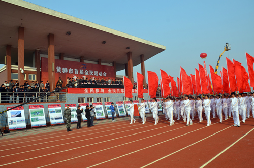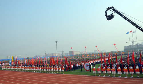 10月18日上午8:00,以“全民参与、全民共享、幸福全民”为主题的黄骅市首届全民运动会开幕式在我院运动场隆重举行。黄骅市委副书记、市政府市长潘海瀛,黄骅市委副书记董文昌等四套班子领导以及沧州市体育局局长马英利等出席开幕式。我院执行院长王大勇应邀出席开幕式并在主席台就坐。黄骅市社会各界近3000人现场观看开幕式。开幕式由黄骅市政府副市长郑增强主持。