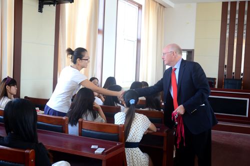 8月31日上午,Malcolm Davies副校长与我院50多名学生进行了面对面的交流和互动,并就国际预科班的相关情况回答学生咨询。