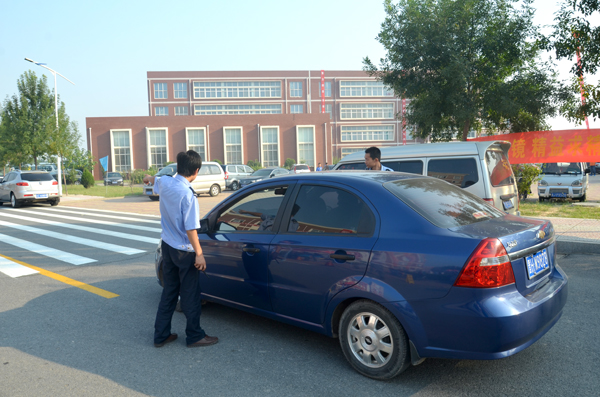 保卫处工作人员疏导校园交通