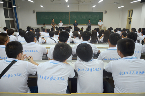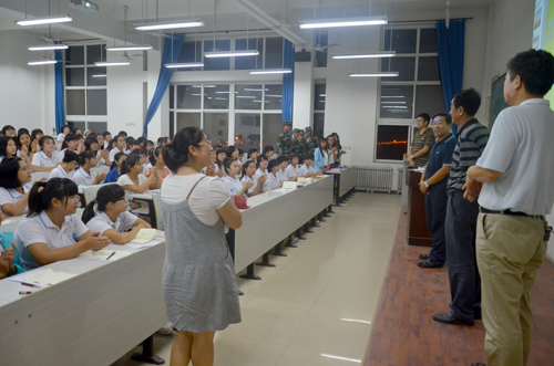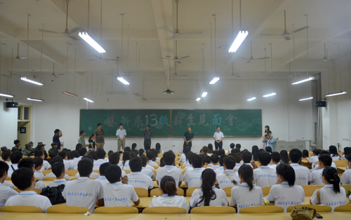 9月3日晚7点,我院2013级各系各专业组织召开新生专业见面会。365英国上市网站官网党委副书记、我院院长高福廷,执行院长王大勇,副院长贾怀义、副院长徐维祥在学生处处长孙文博的陪同下,来到教室,亲临专业见面会现场看望新生。