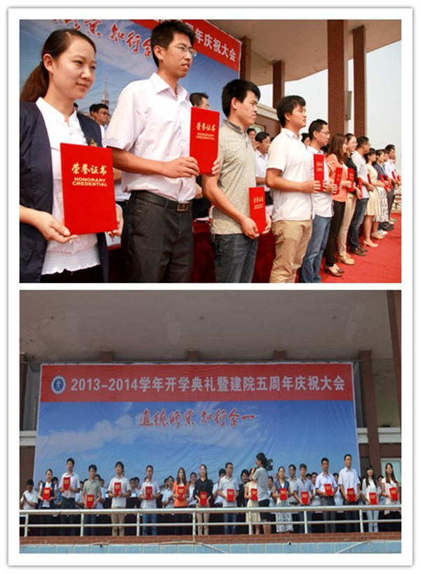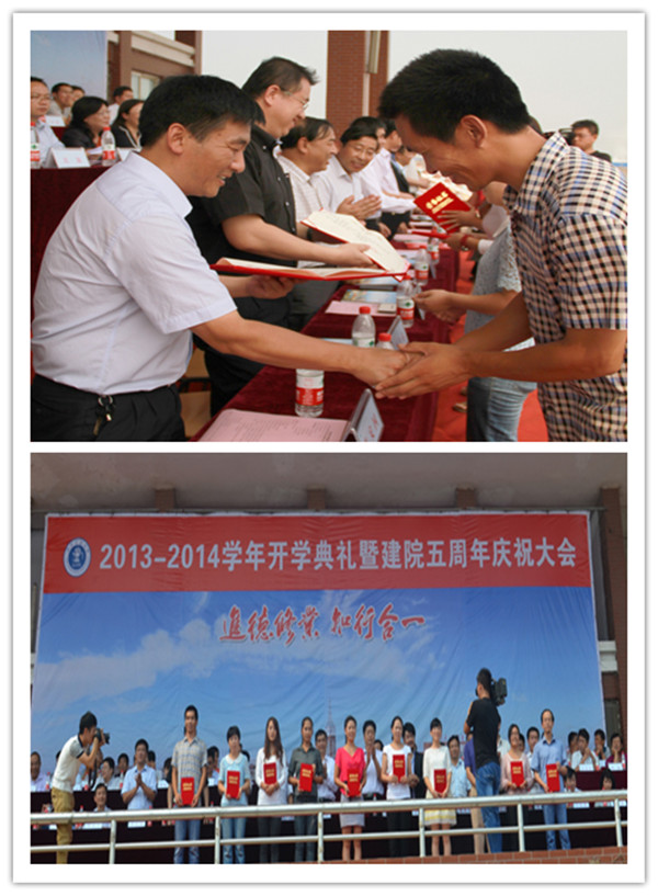 会上,我院副院长兼副书记张长铎宣读了2012-2013年度学院优秀教职工表彰决定,副院长贾怀义宣读了在学院工作满五年的教职工奖励决定,副院长徐维祥宣读了“祥兴奖学金”、“行远助学金”获奖学生表彰决定。随后,主席台前排领导分别为院级优秀教职工代表和在学院工作满五年教职工代表颁奖;薛君南董事还为获奖学生代表分别颁发了祥兴奖学金和行远助学金。