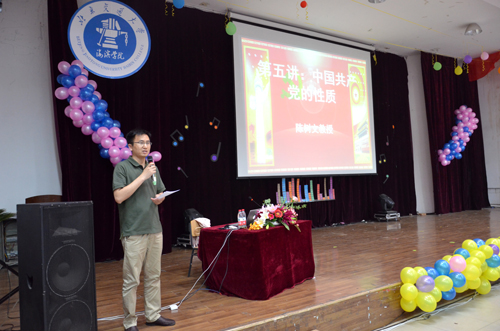 陈树文教授主讲的题目是《中国共产党的性质》,陈教授从回顾中国近现代史及中国共产党的产生和发展入手,以如何认识社会发展规律、党执政规律和社会主义建设规律为切入点,对党的性质问题进行深入阐述和全面讲解。陈教授的讲座以史带论、深入浅出、贴近实际,教育和感染着在场的每一位师生,博得全场的阵阵掌声。