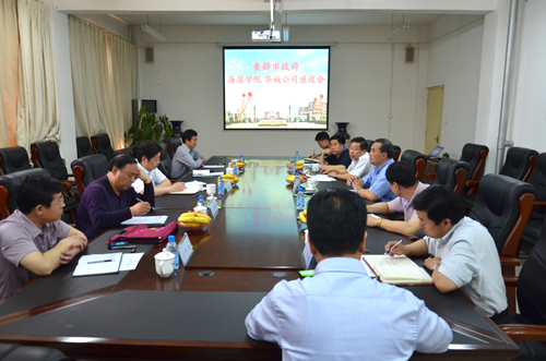 在认真听取工作汇报后,潘海瀛市长代表市政府做了总结讲话。潘市长指出,海滨学院是黄骅市的名片,是黄骅市经济、社会、文化繁荣发展的重要组成部分,海滨学院和华城公司为服务黄骅市区域经济社会发展做出了重要贡献,黄骅市政府将进一步理顺管理机制,增强服务意识、提高服务水平,为海滨学院的快速健康发展提供强有力的支持,创造良好的发展环境。对于学院在发展中遇到的问题,潘市长逐一给予答复,责成主管副市长及各相关部门负责人提出解决方案,黄骅市政府各相关部门表示一定会抓紧落实、尽快解决相关困难和问题。