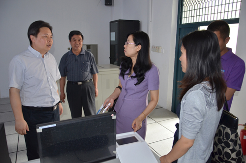 24日上午,在冯宝玺处长和李向前副教授的陪同下,罗娅总经理和赵宏副院长还实地考察了我院计算机实验室,参观了365英国史馆及我院校园环境。