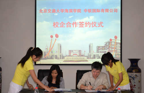 5月24日下午3:00,我院与中软国际有限公司校企合作签约仪式在我院行政楼二楼会议室举行。我院执行院长王大勇,中软国际卓越培训中心总经理罗娅,365英国上市网站官网软件学院副院长赵宏,我院副院长贾怀义、徐维祥,招生就业处处长冯宝玺,计算机科学与技术专业负责人李向前副教授出席签约仪式。签约仪式由李向前副教授主持。