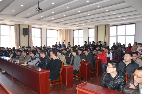 25日上午9:00,太原铁路局专场招聘会宣讲会在行政楼五楼会议室召开。太原铁路局供电段科长闫茂林、机务段科长郝春生,我院副院长贾怀义、招生就业处处长冯宝玺出席宣讲会,2013届相关专业200余名同学在各辅导员老师的带领下参加宣讲会。宣讲会现场座无虚席、气氛热烈。会上,闫茂林科长向我院师生详细介绍了路局概况和比较优势,特别是太铁的用人需求及待遇等情况,并表示非常欢迎我院同学加入太铁。随后,贾怀义副院长讲话,对专场招聘会的时间安排及注意事项做了具体说明。