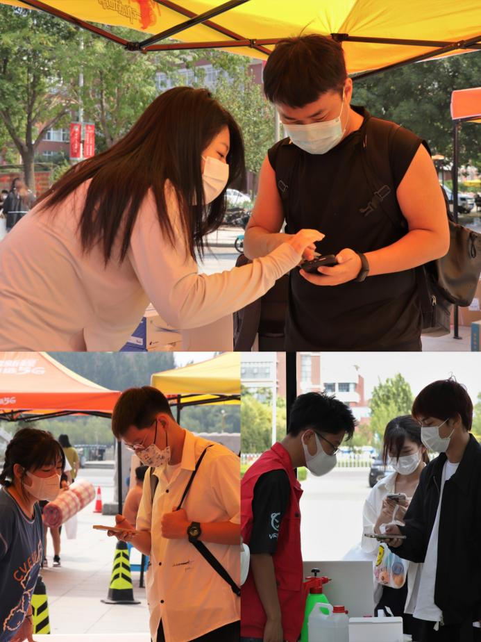 同时,为维持学校秋季学期开学各项工作秩序,避免报到学生在学校门口聚集,若干名教职工志愿者在学校门口扫码区耐心向各位家长讲解新生入校事宜并组织家长进入休息区,以确保迎新工作正常进行。
