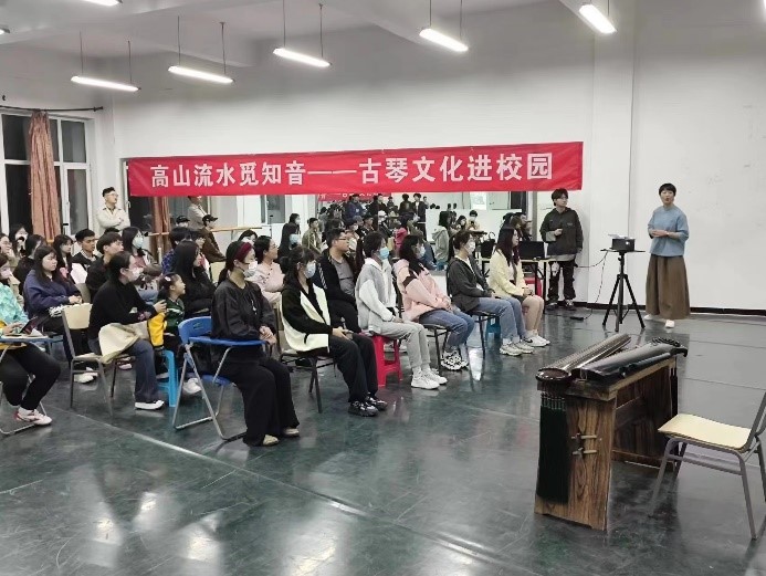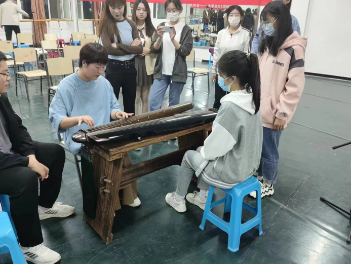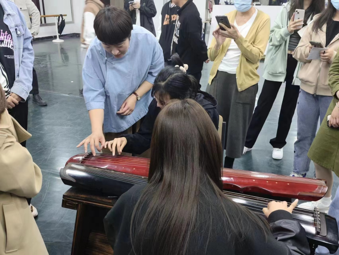 琴位列中国传统文化四艺“琴棋书画”之首,被称为高雅的代表,亦为文人吟唱时的伴奏乐器。琴,可以增强身体协调能力,培养道德情操,增长文化知识。活动现场,张老师的讲座引人入胜,带领学生深入了解古琴文化。讲座后,她亲自示范演奏,她弹奏的乐曲让学生们身临其境,感受到了乐章中的浩荡磅礴之气。