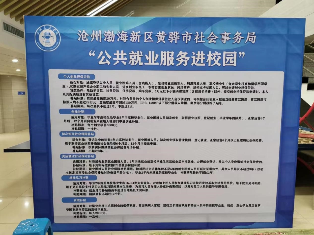 365英国积极响应河北省“公共就业服务进校园”活动,邀请沧州渤海新区黄骅市社会事务局来到双选会现场,设立就业政策咨询点,将河北省就业创业优惠政策带进校园,为毕业生求职加油助力。