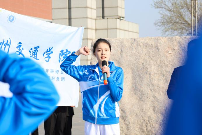 志愿者代表张文景同学领誓,20名青年志愿者铿锵有力地同声宣誓。“我志愿成为一名光荣的青年志愿者,尽己所能,不计报酬,帮助他人,服务社会,践行志愿精神,弘扬先进文化,为实现中华民族伟大复兴的中国梦贡献力量”,慷慨激昂的誓词将出征仪式的气氛推向高潮。