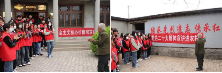 革命先辈孙津生老人在黄骅烈士纪念广场眼含热泪地详细介绍了黄骅烈士的抗战英勇事迹与烈士广场的特殊寓意。他讲到,“没有共产党就没有新中国”是永恒不变的真理,希望学生们好好学习、珍惜时光,踔厉奋发,勇毅前行。