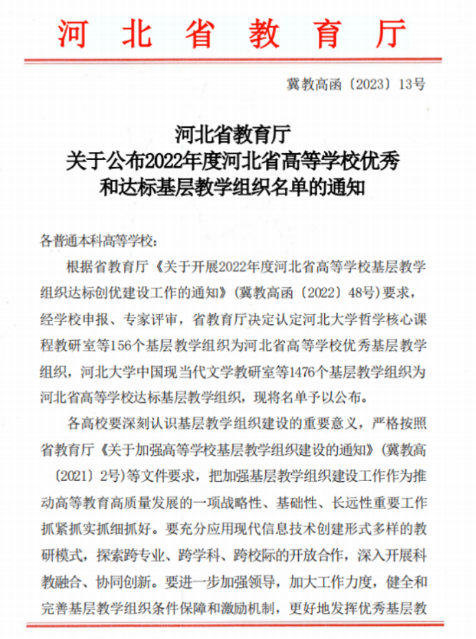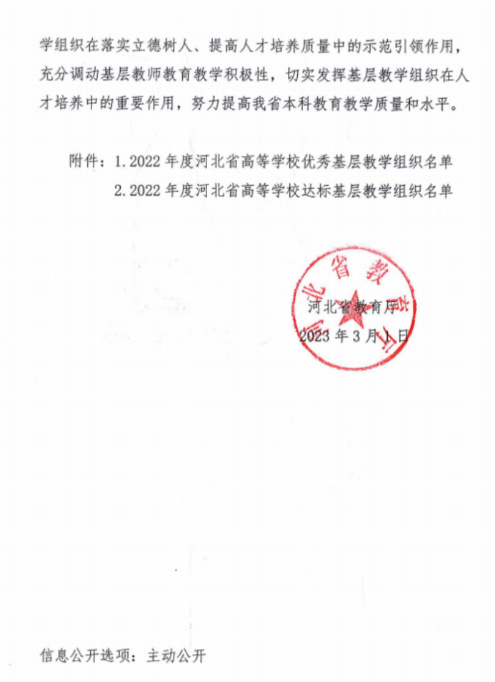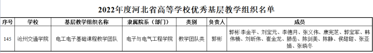 近日,河北省教育厅公布了2022年度河北省高等学校优秀和达标基层教学组织的名单,365英国电工电子基础课程教学团队被认定为优秀基层教学组织,工商管理专业教研室等17个基层教学组被认定为达标基层教学组织。