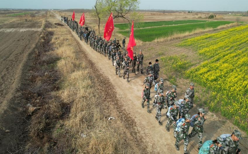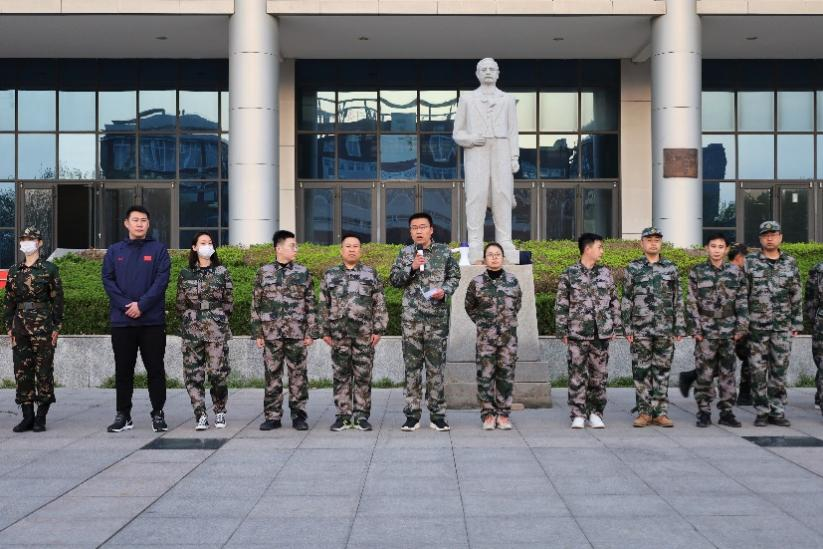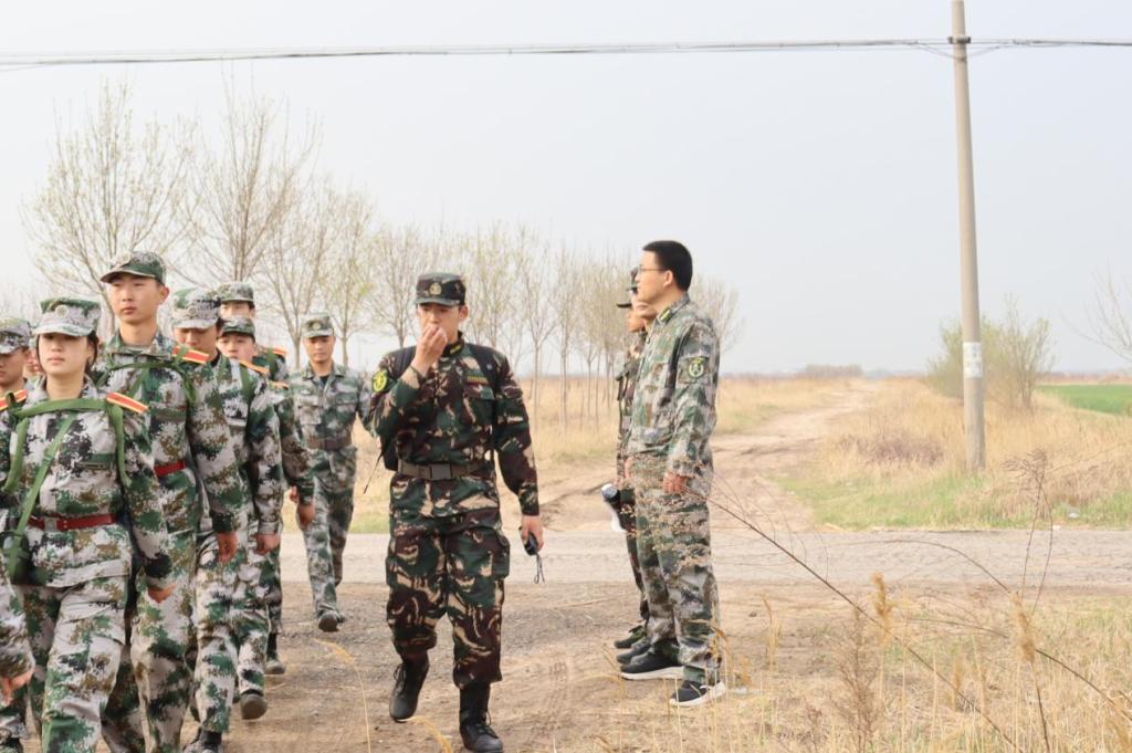 为了更好地融入本次活动,领导老师们都身着迷彩,与教官们一路同心、一路同行。拉练出发前,王庆松老师进行了鼓舞士气的发言,嘱托教官们完成好拉练任务的同时要注意自身安全。