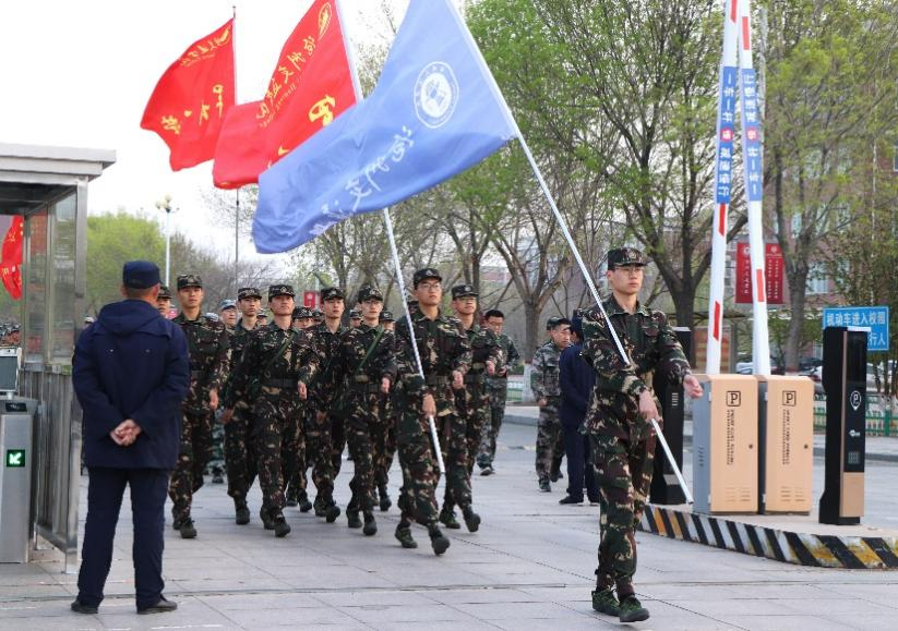 战地救险任务完成后,队伍向东行进回到学校南门。各学院副院长,在学校南门热烈欢迎完成拉练活动的教官们,庆祝此次军训教官“模拟抗灾救险”拉练活动顺利完成。