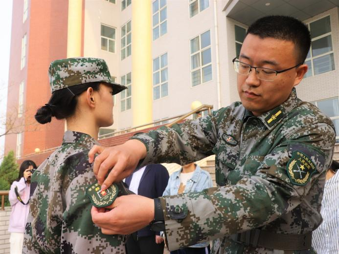 汇报表演结束后现场领导对2022级教官团训练成果表示充分肯定和表彰,并进行了授勋仪式。