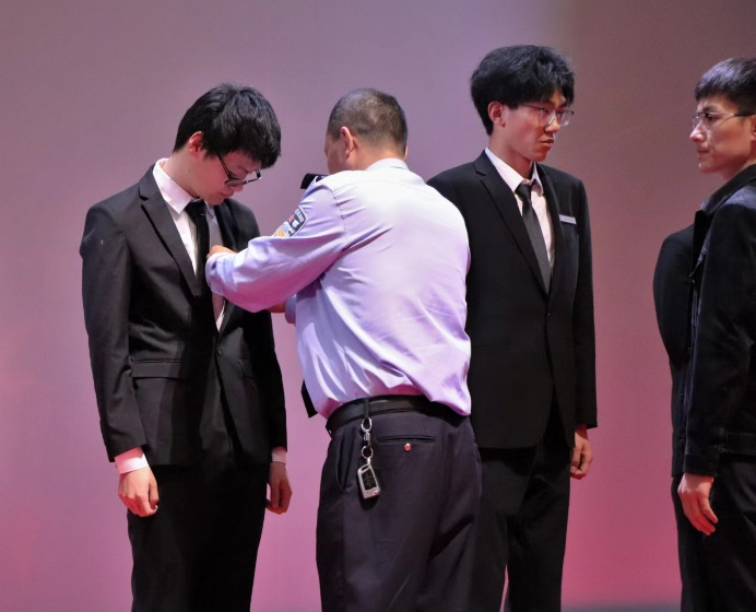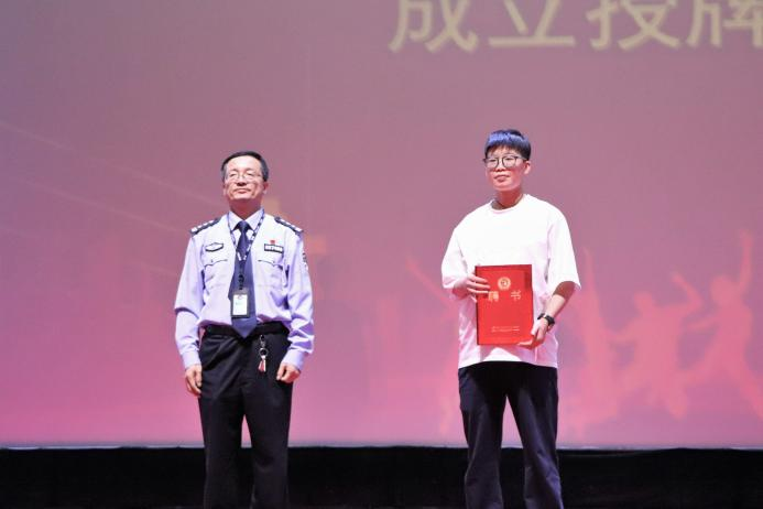 副校长邵晓康,沧州市禁毒办副主任、沧州市公安局禁毒支队政委董强等领导为协会成员代表佩戴胸牌并合影留念。