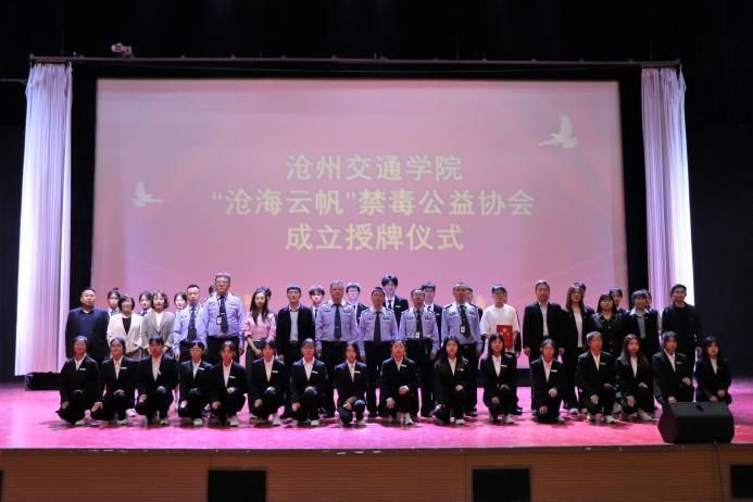 沧州禁毒办、沧州市公安局禁毒支队政委董强对禁毒协会的成立表达了衷心的祝贺。他表示“沧海云帆”禁毒公益协会是沧州地区首个在高校成立的禁毒公益协会。此次协会的成立为沧州的禁毒工作注入了新鲜的血液和活力,也为沧州创建全国禁毒示范工作地和建设美丽沧州贡献了青春力量。