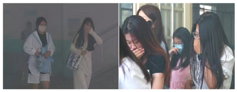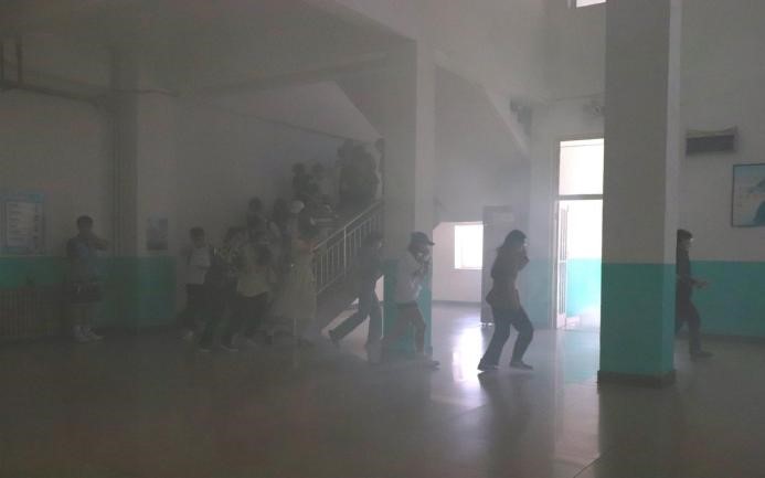 疏散指令响起,演练进入紧急疏散环节,同学们在老师及各楼层疏散引导员的指导下,在模拟的火灾烟雾中弯腰低身,降低身体重心,在楼梯右侧排成两列有序下楼,沿着安全逃生疏散路线快速撤离教学楼。