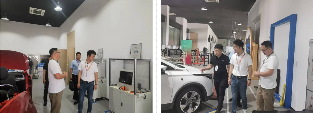 在吉利汽车陶智经理的陪同下,邵晓康一行参观了吉利汽车的制造中心。