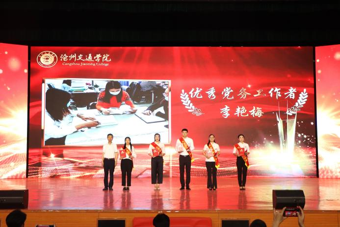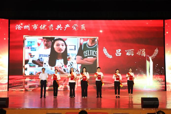 授予吕丽娟、陈静、候雪伟、门媛、王晓辉、陈梦、齐瑞璇7位同志“沧州市优秀共产党员”荣誉称号,授予周志慧、邵艳霞、张晗3位同志“沧州市优秀党务工作者”荣誉称号,授予通识教育学院党总支“沧州市先进基层党组织”荣誉称号。