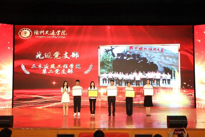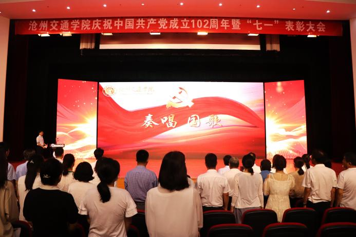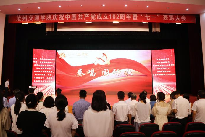 在庄严的国歌声中,大会拉开序幕。大会重温党的光辉历程,讴歌党的丰功伟绩,继承党的优良传统,表彰学校先进党总支、先进党支部、优秀党务工作者、优秀共产党员,沧州市先进集体和优秀个人。