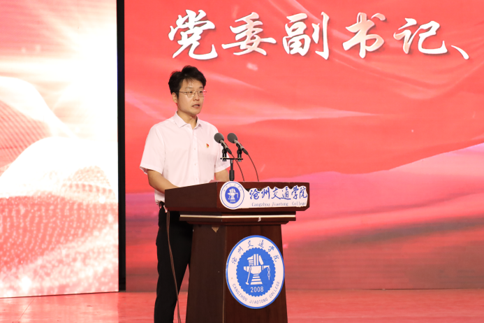 党委书记庞更新在讲话中指出,学校过去的一年是极不平凡的一年,是所有沧交人奋斗着、感动着和收获着的一年。一年来,学校紧紧围绕学习宣传贯彻党的二十大精神为主线,切实把思想和行动统一到党的决策部署上,引导全体党员树牢“四个意识”、坚定“四个自信”、捍卫“两个确立”、做到“两个维护”,在全校上下迅速掀起学习宣传贯彻党的二十大精神热潮,并把学习效果集中体现在推动学校各项事业发展上,实现了党建工作和业务工作双融合、双促进、双丰收。他向各基层党组织和全体师生党员提出三点希望和要求:一是要坚定政治方向,落实立德树人根本任务;二是要加强质量管理,提升党建工作标准化水平;三是要涵养组织文化,营造风清气正政治生态。