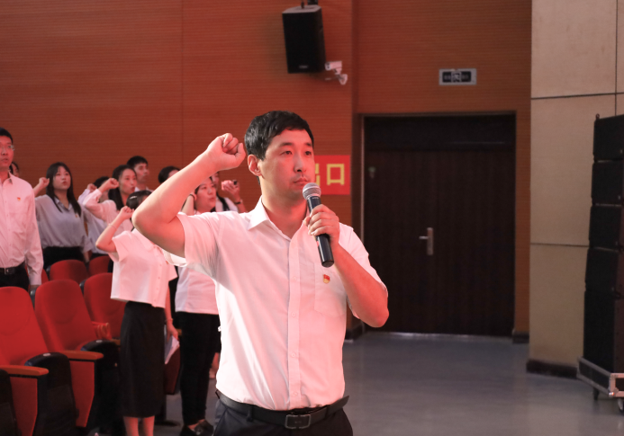 入党誓词是中国共产党人坚守初心和使命的郑重承诺,它时刻激励着全体党员弘扬伟大建党精神,践行党的根本宗旨。面向鲜红的中国共产党党旗,党群工作部副部长彭一腾举起右拳,带领新党员宣誓、老党员重温入党誓词。