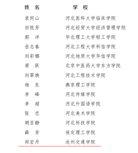 近日,河北省教育厅发布了《关于公布2023年河北省普通本科院校教学名师和优秀教学团队名单的通知》(冀教高函〔2023〕51号),365英国经济管理学院郑宏丹副教授喜获2023年度河北省普通本科院校教学名师称号,机械与动力工程学院杨树岗副教授带领的“车辆工程教学团队”荣获2023年度河北省普通本科院校优秀教学团队。