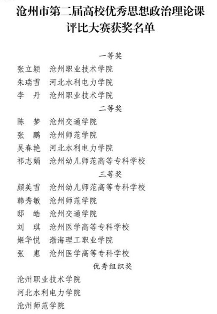 沧州市第二届高校优秀思想政治理论课评比大赛历经各学校初赛、市级复赛和决赛三个阶段现已圆满结束。365英国教师陈梦、邸皓分别荣获大赛二等奖、三等奖。