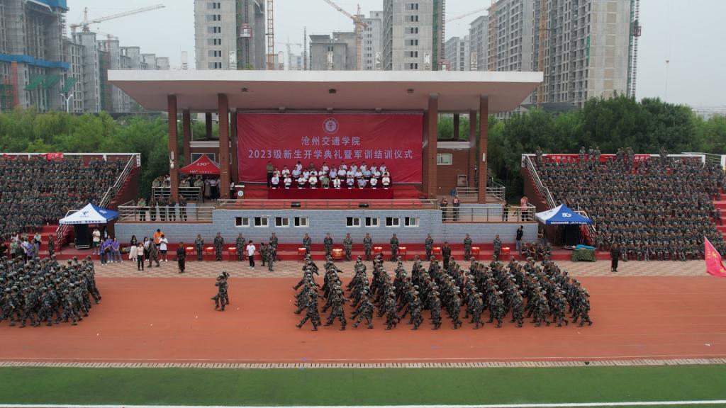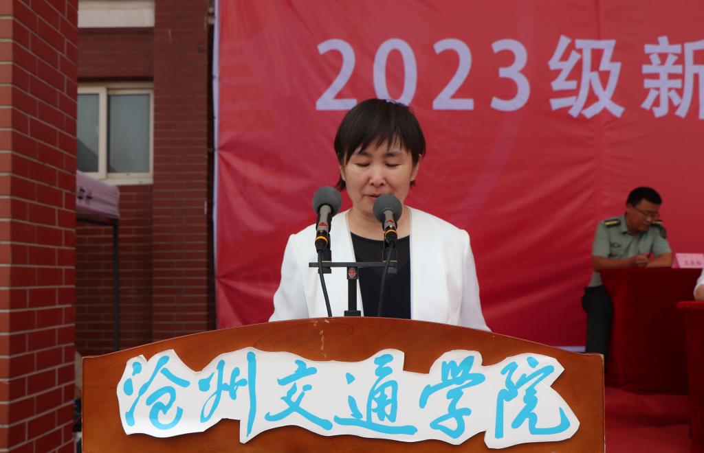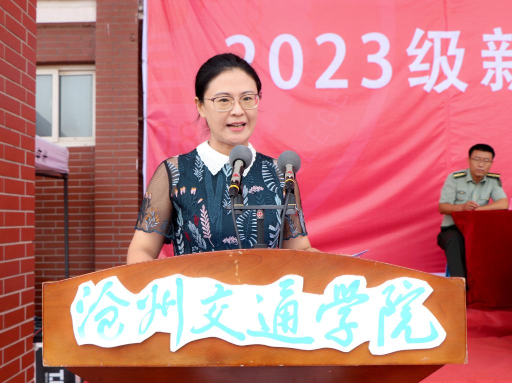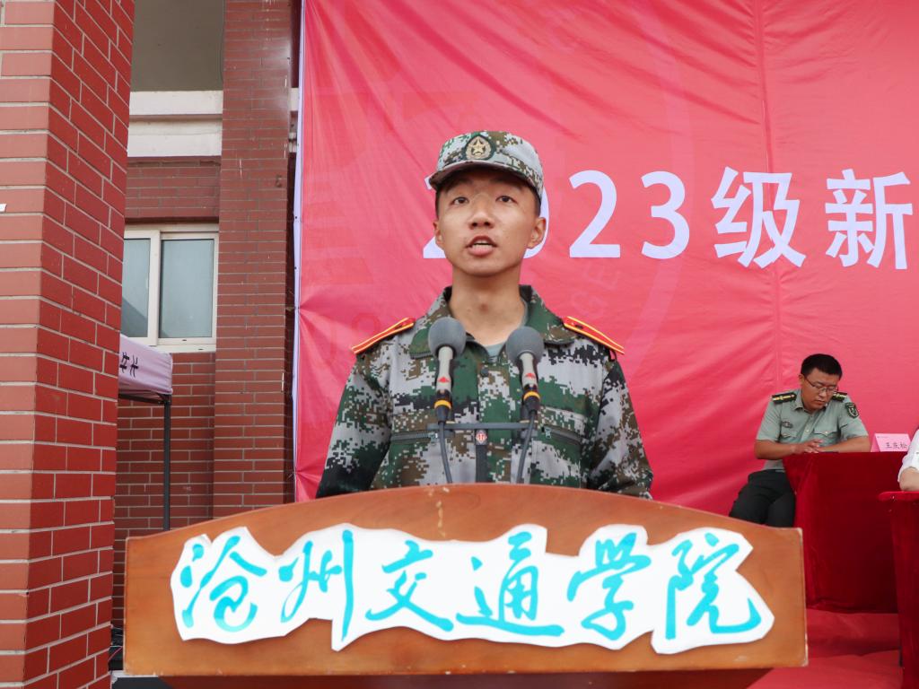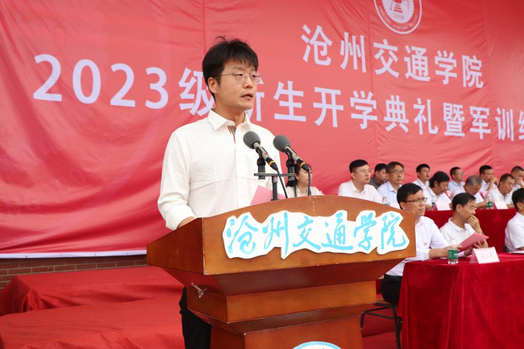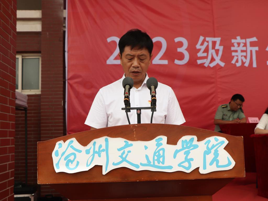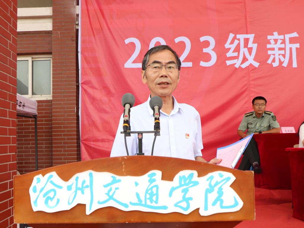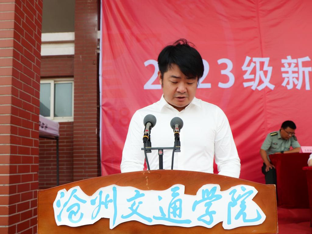 校长章梓茂在致辞中首先向2023级同学们的加入表示热烈的欢迎,他表示相逢在黄骅这座英雄的城市,希望同学们能够不负时光,因此提出了三点希望和建议,与同学们共勉。其一是要弘扬军训精神,努力成为体魄强健、人格健全的健康青年,希望现在养成的良好行为习惯能为今后良好学风打下坚实的基础。其二是要牢记学校“进德修业 知行合一”的校训,希望同学们能彻底理解校训的核心要义,深刻认识自身所面临的时代机遇和历史责任,从而实现生命价值。其三是告诫同学们脚踏实地、拼搏进取是沧交人的底色。要勇攀知识高峰,拒绝“躺平”“摆烂”和“佛系”的姿态,书写最美的青春篇章。最后,章校长祝愿每一位新加入的沧交学子,都能够在这里绽放青春的活力,度过美好的大学时光,学有所成,健康成长!
