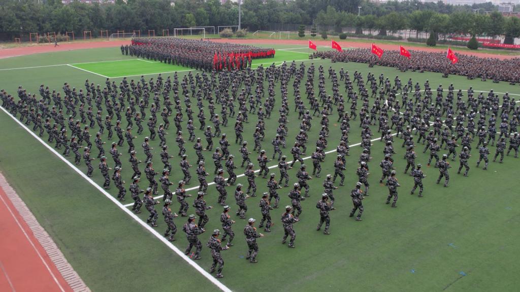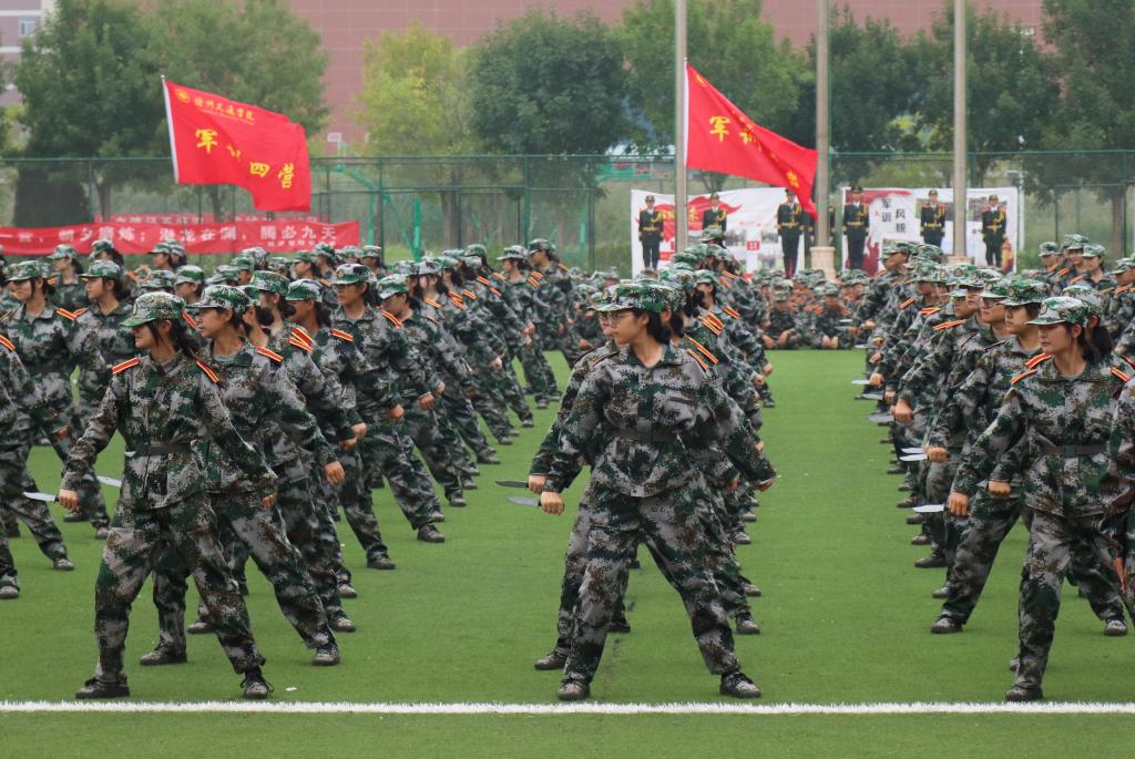“哈!哈!哈!”清脆中又不失霸气。匕首操方阵的女学员,一招一式都精准到位,动作干脆利落,可谓巾帼不让须眉。