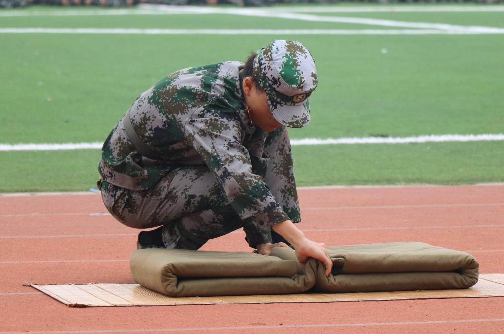 细节决定成败,用心成就未来。内务表演的同学用熟练的动作叠出了一个个豆腐块,彰显出沧交学子精益求精的追求。