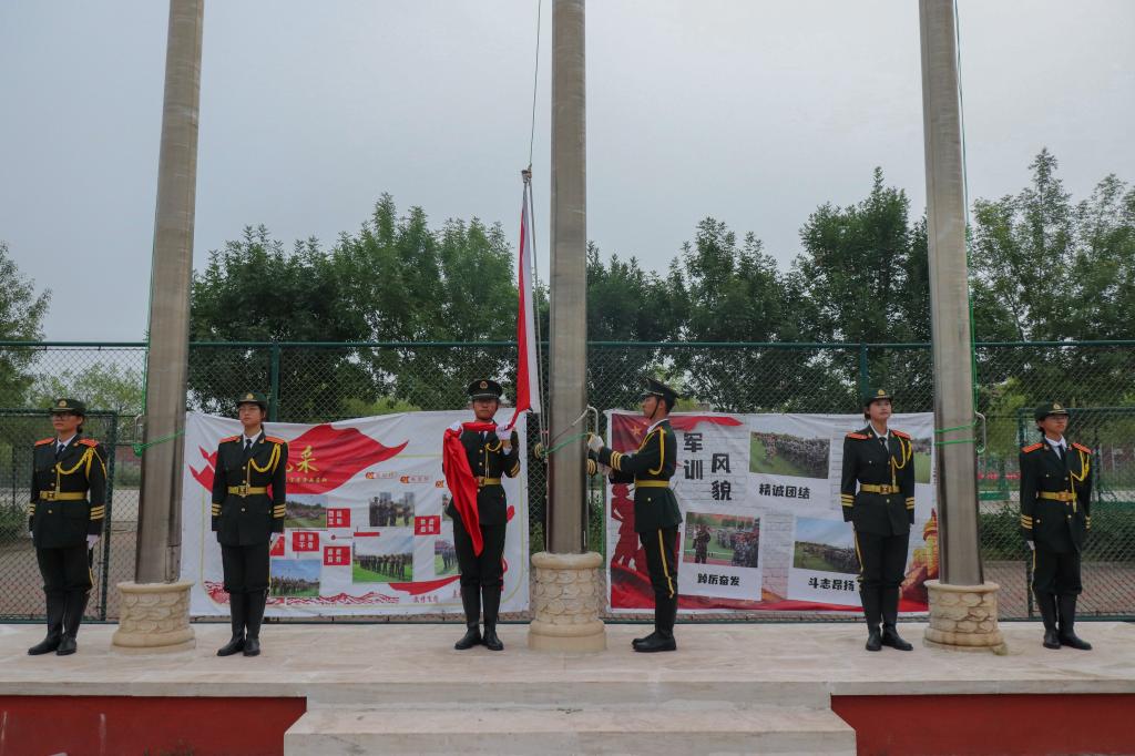 升国旗,唱国歌。全体人员面向国旗,庄严肃立,在雄壮的国歌声中,鲜艳的五星红旗在旗手的操控下冉冉上升,2023级新生开学典礼暨军训结训仪式正式开始。
