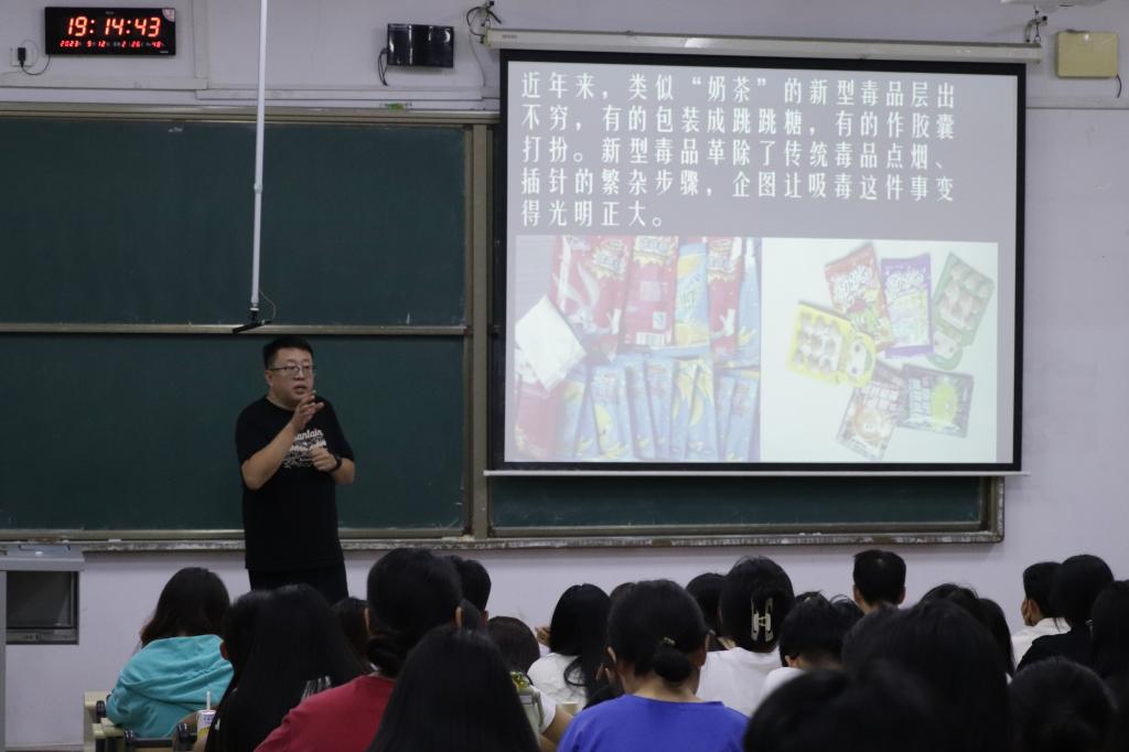 禁毒教育关乎大学生身体健康、心理健康和人格健康,意义和责任重大。高校作为传播正能量、弘扬主旋律的主力军,要在禁毒、防毒、抵制毒品等方面,利用好专业特色,打造健康知识理念,扩大禁毒影响,真正打造“无毒校园”。为深入贯彻落实习近平总书记关于“大思政课”的重要指示批示精神,聚焦立德树人,推动铸魂育人,365英国聘请禁毒民警开设《毒品的认知与预防》公选课,助力大学生安全教育管理。