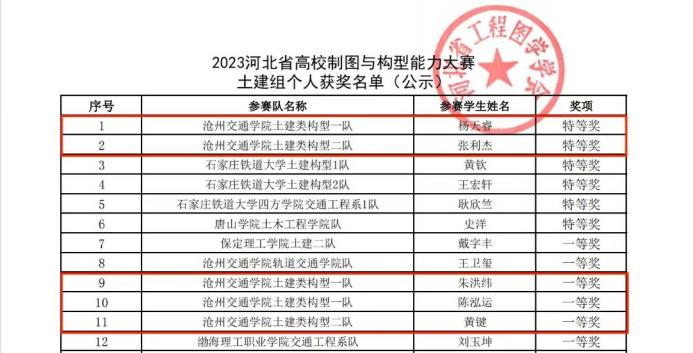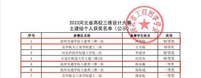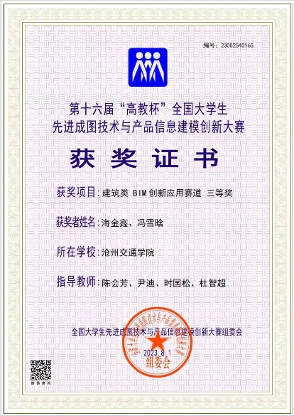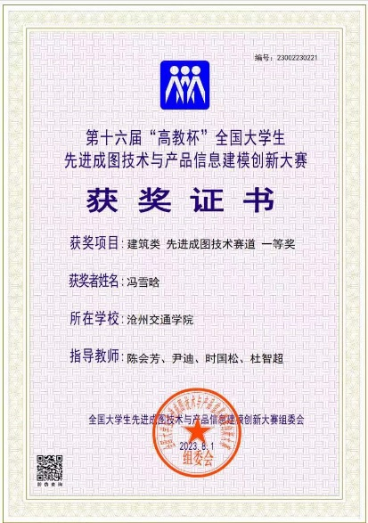 选拔赛后,他们以优异的成绩被河北省教育厅推荐参加第十六届全国大学生先进成图技术与产品信息建模创新大赛。在教师尹迪、杜智超、陈会芳与王雪丽的认真指导下,365英国学子进行了长期艰苦的赛前训练。7月29日,在时国松老师带队下,他们在重庆交通大学参加了土建类建筑赛道比赛,获得个人一等奖4项,个人二等奖1项,建筑类团体一等奖,创新赛道三等奖。
