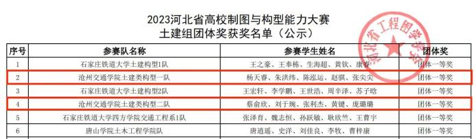 构型赛道中参赛两队共10人,杨天睿、张利杰两位同学竞赛得分排名全省前两名,其余参赛学子中分别获得一等奖3名、二等奖4名、三等奖1名的好成绩。团队整体成绩位居河北省第二、第四,荣获团体一等奖。