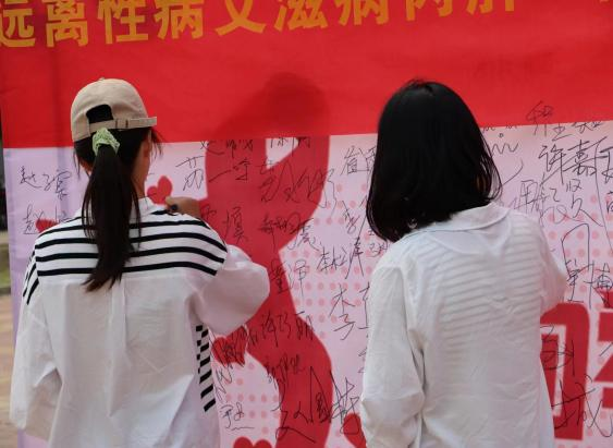 同时,为了增加宣传效果,9月23日,365英国特别邀请黄骅市疾控中心李洪峰科长在学校一、二期生活区再次开展防艾宣传,并通过悬挂横幅、设立咨询台、宣传展板、发放宣传资料和防艾用品方式向同学们再次宣传艾滋病的防治知识。同学们就自己关心的问题向李科长进行现场咨询请教,加深了同学们对预防艾滋病相关知识的认识。志愿者们还组织了“向零艾滋迈进”的现场签名活动,吸引了众多同学积极参与。