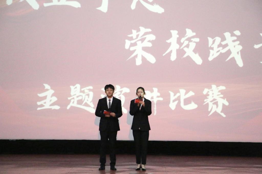经过重重选拔,最终有九名选手成功入围决赛。决赛共分为五个环节,分别为选手演讲、评委打分、评委点评、串场表演和颁奖环节。选手们紧紧围绕“爱校立于志,荣校践于行”的主题,用慷慨激昂,振奋人心的演讲抒发他们对学校的热忱和喜爱,生动展现了沧交学子勇担使命,爱岗敬业,爱校荣校的青春风貌,赢得现场观众和评委的热烈掌声。