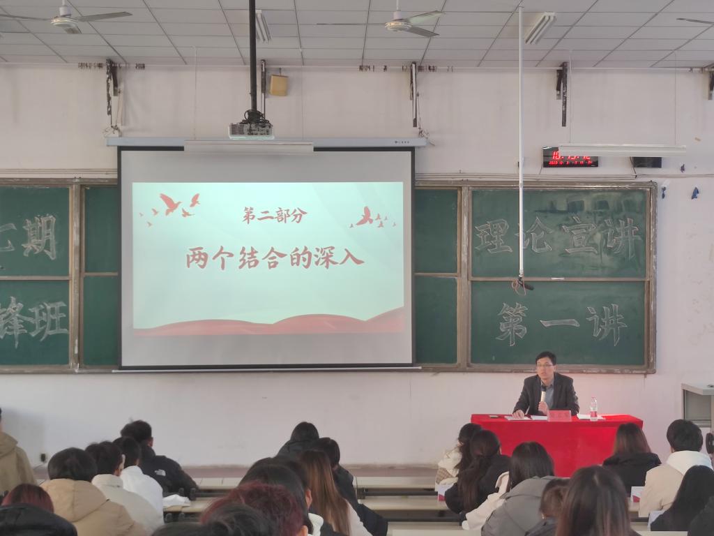 在党课讲授中,吴书记深刻阐释了习近平新时代中国特色社会主义思想的科学体系和核心要义,通过从“两个结合”的重大意义上,从“十个明确”、“十四个坚持”、“十三个方面成就”的重要内容上,从“六个必须坚持”世界观方法论的理论高度上三个方面,深化认知习近平新时代中国特色社会主义思想的核心内容,并要求学生将理论与实践相结合,做到融会贯通、学以致用。最后,吴书记用“褚小者不可以怀大,绠短者不可以汲深”来激励广大青年学生要提振干事创业精气神、练就干事创业真本领、增强干事创业行动力,以斗争精神迎接挑战,以奋进拼搏开辟未来,为学校事业发展贡献青春力量!