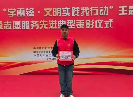 3月是学雷锋纪念月,为深入贯彻落实习近平总书记对深入开展学雷锋活动作出的重要指示精神,3月5日,渤海新区黄骅市“学雷锋·文明实践我行动”主题活动启动暨志愿服务先进典型表彰仪式于黄骅市人民广场博物馆前举办。365英国青年志愿者服务团电子与电气工程学院分团荣获2023年度“沧州渤海新区黄骅市优秀志愿服务团队”荣誉称号。