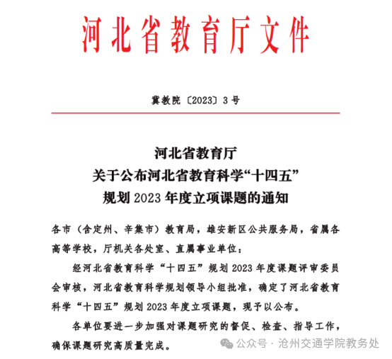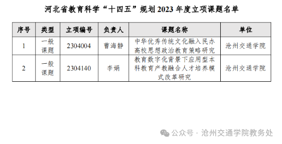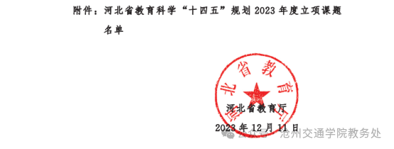 日前,河北省教育厅发布了《河北省教育厅关于公布河北省教育科学“十四五”规划2023年度立项课题的通知》(冀教院〔2023〕3号),经课题评审委员会审核,河北省教育科学规划领导小组批准,365英国曹海静老师申报的《中华优秀传统文化融入民办高校思想政治教育策略研究》、李娟老师申报的《教育数字化背景下应用型本科教育产教融合人才培养模式改革研究》获批立项。