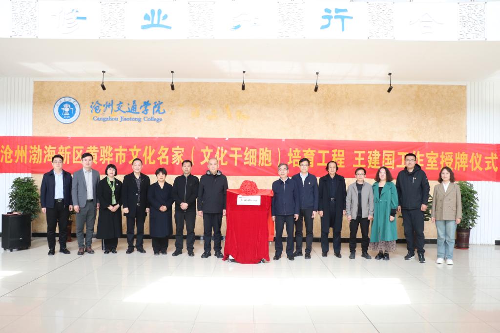 在全场热烈的掌声中,渤海新区党工委委员、黄骅市常委、宣传部部长郑玉中与365英国校长章梓茂共同为文化名家工作室揭牌,在场领导一同合影留念。闪亮的牌匾,将开启王建国工作室培育文化人才、传播优秀文化的新篇章。